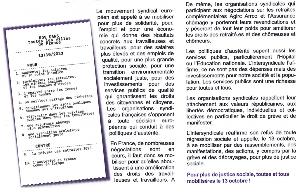 Le 13 octobre 2023, mobilisez-vous contre l’austérité, pour les salaires et l’égalité femmes-hommes !Par Snepl-CFTC / 21 septembre 2023 FacebookShare on XLinkedInWhatsAppEmailCopy LinkPrint