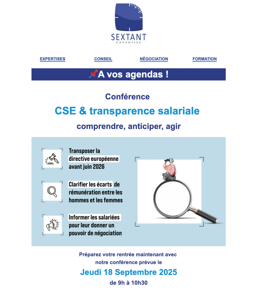Jeudi 18 Septembre 2025 de 9h00 à 10h30 : conférence CSE & transparence salariale : comprendre, anticiper, agir !Par Snepl-CFTC / 17 juillet 2025 Programme & inscription obligatoire (ici) ! FacebookShare on XLinkedInWhatsAppEmailCopy LinkPrint