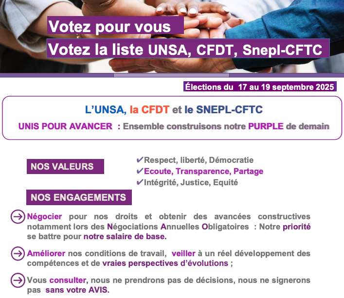 17 et 19 septembre 2025 : L’UNSA, la CFDT et le SNEPL-CFTC UNIS POUR AVANCER : ensemble construisons notre PURPLE de demain !Par Snepl-CFTC / 5 septembre 2025 FacebookShare on XLinkedInWhatsAppEmailCopy LinkPrint