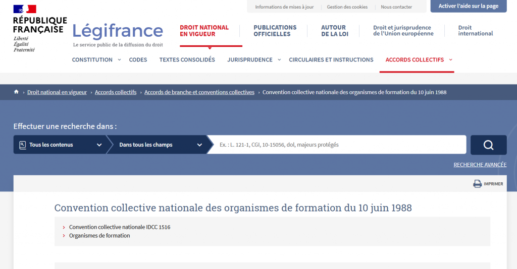 – Convention collective nationale des organismes de formation du 10 juin 1988. Étendue par arrêté du 16 mars 1989 JORF 29 mars 1989.