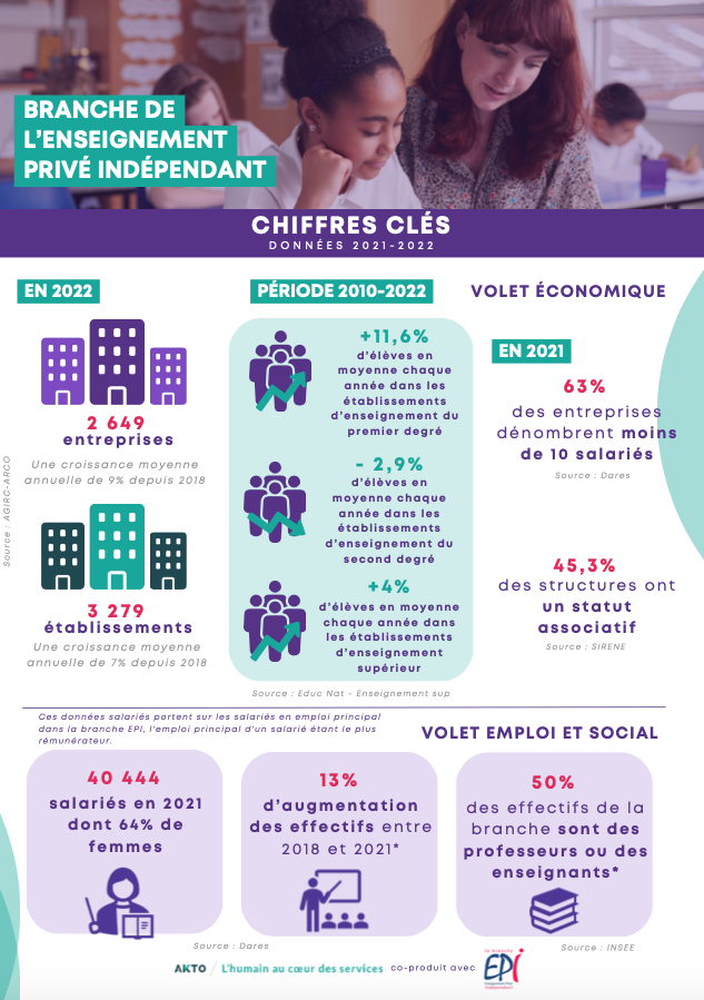 Convention collective EPI – enseignement privé indépendant – IDCC 2691 Convention EPI à télécharger / consulter ci-dessous : https://www.legifrance.gouv.fr/ Infographie de la branche de l’enseignement privé indépendant : FacebookShare on XLinkedInWhatsAppEmailCopy LinkPrint