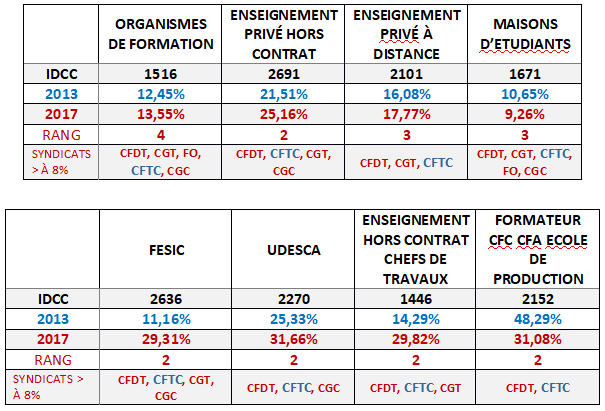 Pour la confédération CFTC qui obtenait 9,30% en 2013, elle progresse en 2017 en atteignant 10,91%.